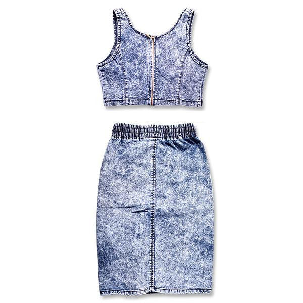 LENGTH: Middle-skirt women denim 2 piece set