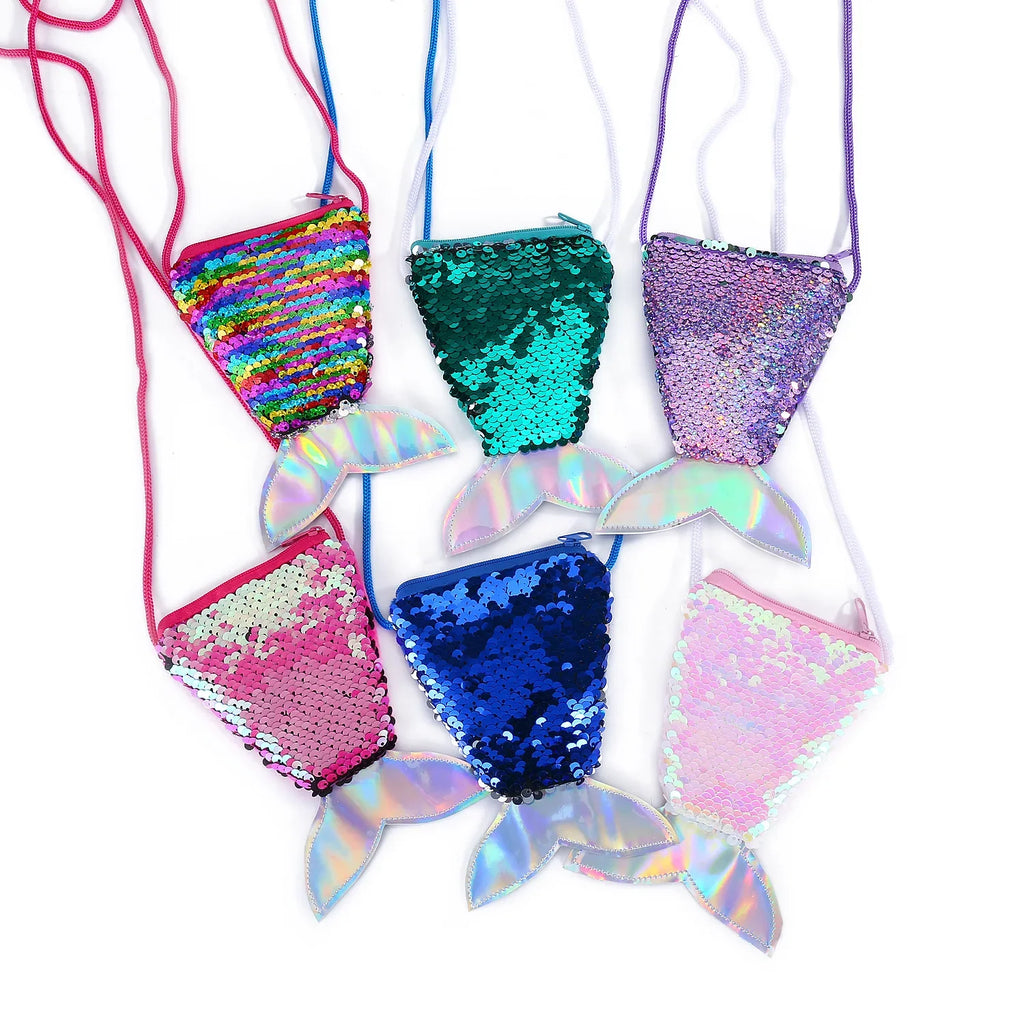 Introducing the Lovely Shiny Mermaid Tail Sequin Girl Crossbody Bag Children Coin Purse Women Shoulder Bag Exquisite Birthday Gifts, a sparkling accessory that every young mermaid will adore! This enchanting bag features a unique fish tail design adorned with dazzling sequins, making it not only a practical choice but also a fashionable statement piece. It's ideal for children and women alike, effortlessly transitioning from a chic crossbody to a stylish shoulder bag.