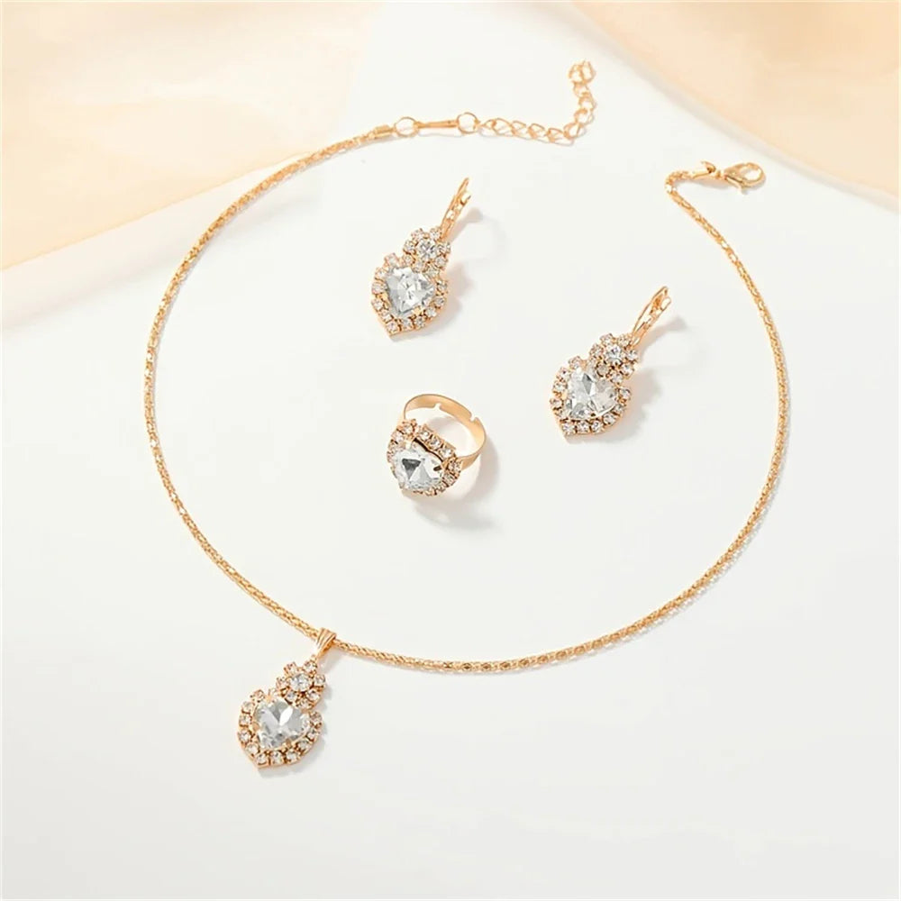 This Luxurious Design Heart Shape Red Crystal Necklace Ring Earrings Jewelry Set is not just a fashion statement; it's a collection that speaks to the heart. With its cute and romantic style, it seamlessly complements any outfit, making it a must-have in your jewelry collection. Whether you're walking down the aisle or celebrating a special milestone, this set ensures you'll shine bright on your special day.