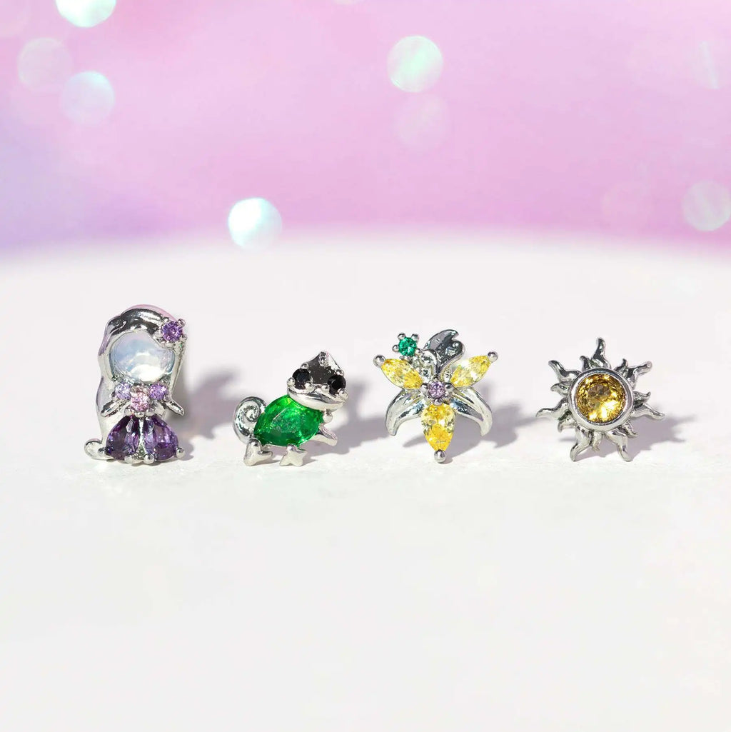 Add some whimsy to your wardrobe with this 4-piece set of Fairy Cute Animal Comb Princess Stud Earrings. The earrings feature sparkling zircon crystals, making them the perfect addition to any outfit. Perfect as a gift for the fashion-forward women and girls in your life.