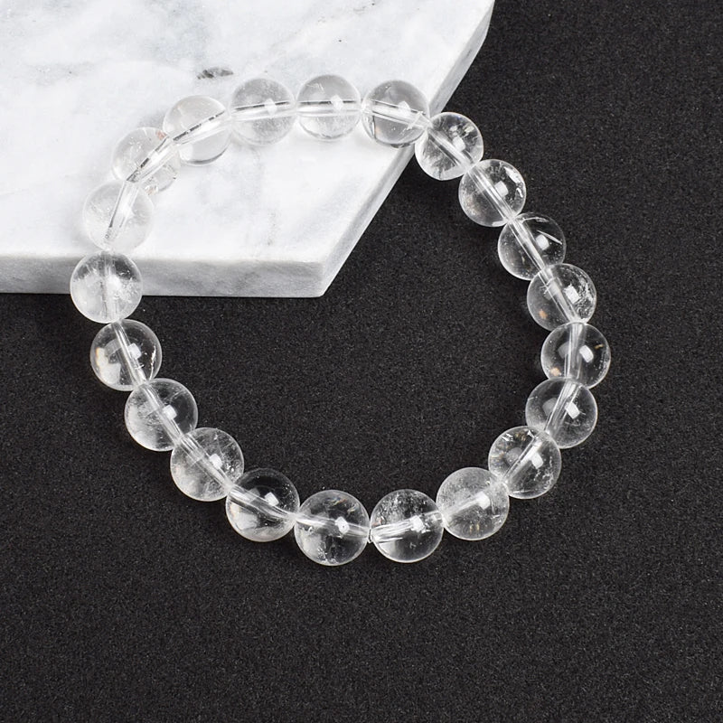 Made from 7A quality natural quartz, our bracelet features round beads that reflect light beautifully. Whether you're looking to enhance your meditation practice or add a touch of elegance to your outfit, this bracelet serves both functions effortlessly.
