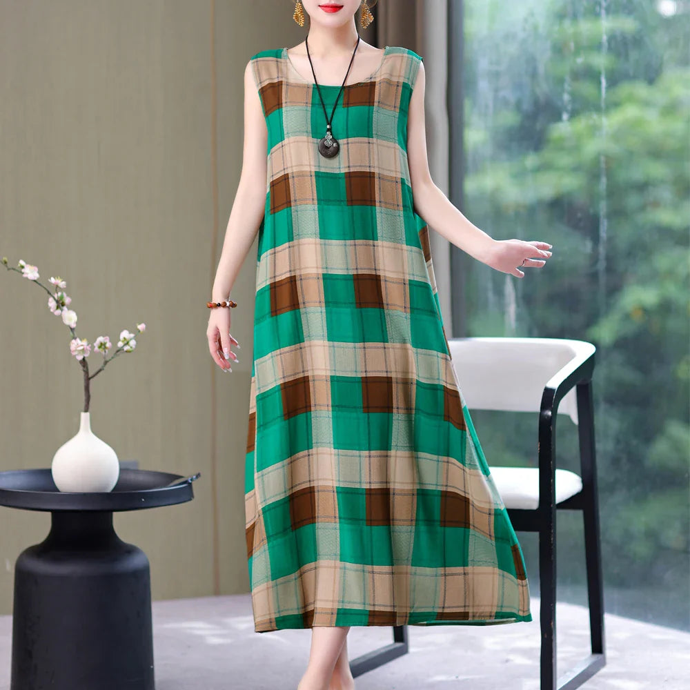 Experience the perfect blend of comfort and style with our Vintage Summer Dress Vestido Print Natural Regular Sleeveless O-neck Cotton Dresses Women Clothing Plus Size. This eye-catching dress is designed for those sunny days when you want to feel cool and fashionable. Crafted from high-quality cotton, this dress promises a soft touch against your skin, making it an ideal choice for summer outings.