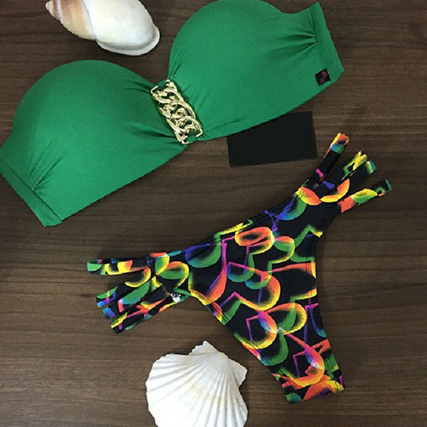 Set of bikinis made from spandex and terylene with a wire-free support type. It fits smaller than usual and it’s a Brazilian style swimsuit.