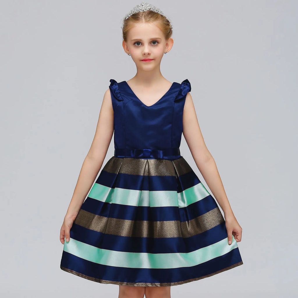 Let your little princess shine in this unique dress that combines elegance and fun. The Girls Striped Flying Sleeve Bow Knot Colored Dress Birthday Party Wedding Flower is more than just a dress; it's a statement piece that will create unforgettable memories at any event. Dress her up and watch as she radiates joy and charm!