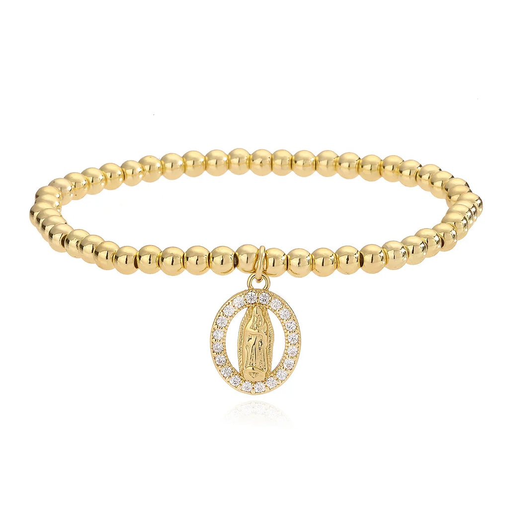 Add some sparkle to your wardrobe with our Gold Color Box Chain Virgin Mary Charm Bracelets! These bracelets are sure to catch the eye with their shiny CZ zircon jewelry and stylish box chain design. Perfect for any occasion, these bracelets are a must-have for any fashion-forward woman.