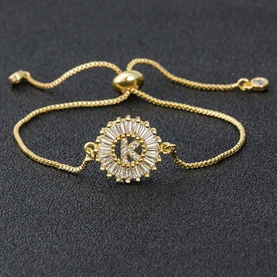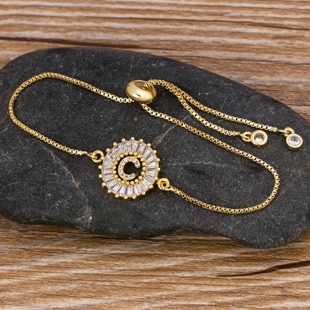 Enhance your jewelry collection with our Initial Micro Pave Cubic Zircon Letter Men Charm Chain Bracelets Adjustable For Women Lovers Jewelry Gift Bangle. This stunning bracelet features a personalized touch, showcasing your chosen letter adorned with sparkling cubic zirconia. Perfect for both men and women, this adjustable chain bracelet is a thoughtful gift idea for any occasion, whether it be birthdays, anniversaries, or just because.