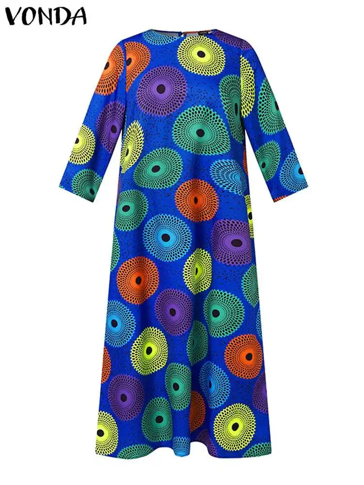 Be the life of the party with this bohemian vintage printed maxi dress! Featuring a casual, loose fit and 3/4 sleeves, this dress is perfect for any autumn occasion. Whether you're dressing up for a party or just enjoying a day out, this dress will keep you stylish and comfortable all day long.