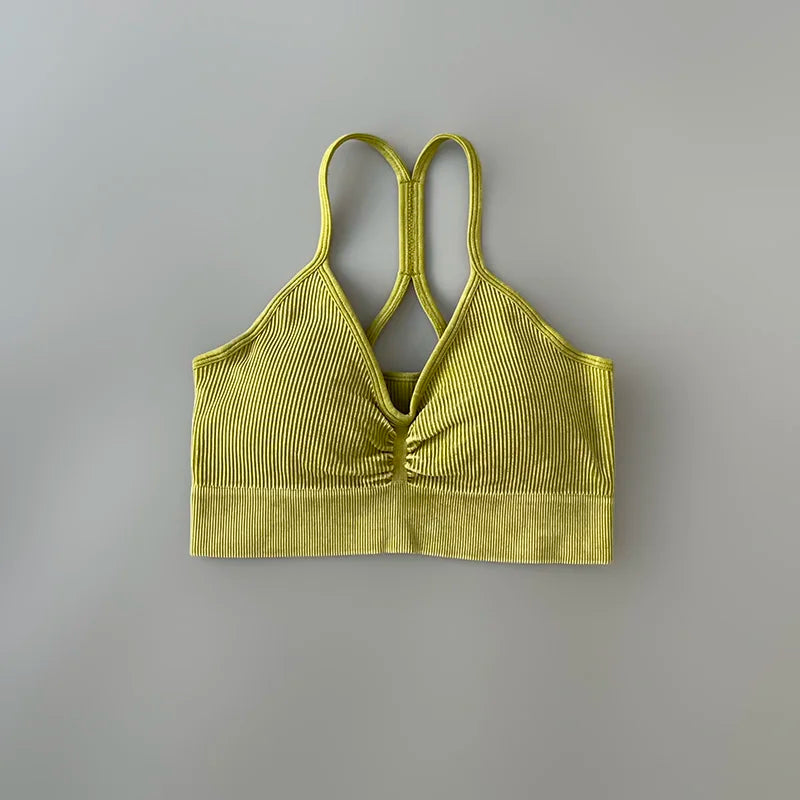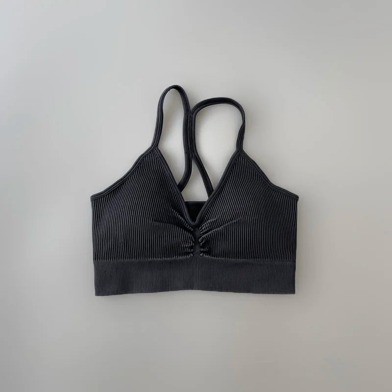 Featuring a seamless ribbed design, this sports bra not only provides exceptional support but also gives you a chic look that transitions effortlessly from the gym to the street. The padded cups and push-up effect enhance your natural shape, ensuring you feel confident while you conquer your workout or yoga session.