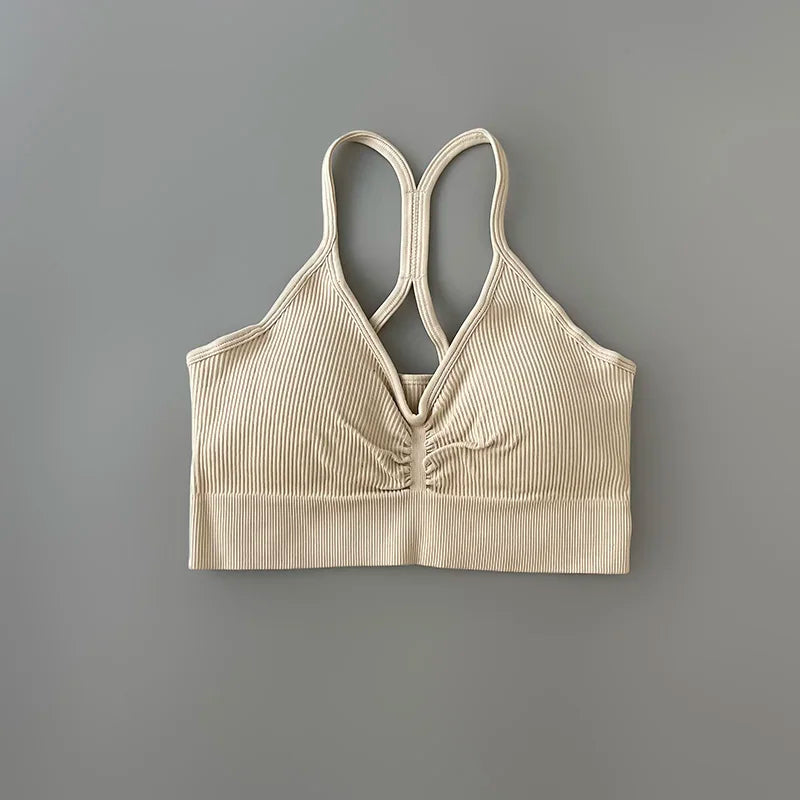 Unleash your inner strength with our Seamless Ribbed Sports Bra. Designed for the bold risk-takers, this bra offers comfortable support and a flattering fit. Perfect for yoga and workouts, it features padded cups and a push-up effect for added confidence. Dare to take on any challenge? Go for it with our workout tank top!