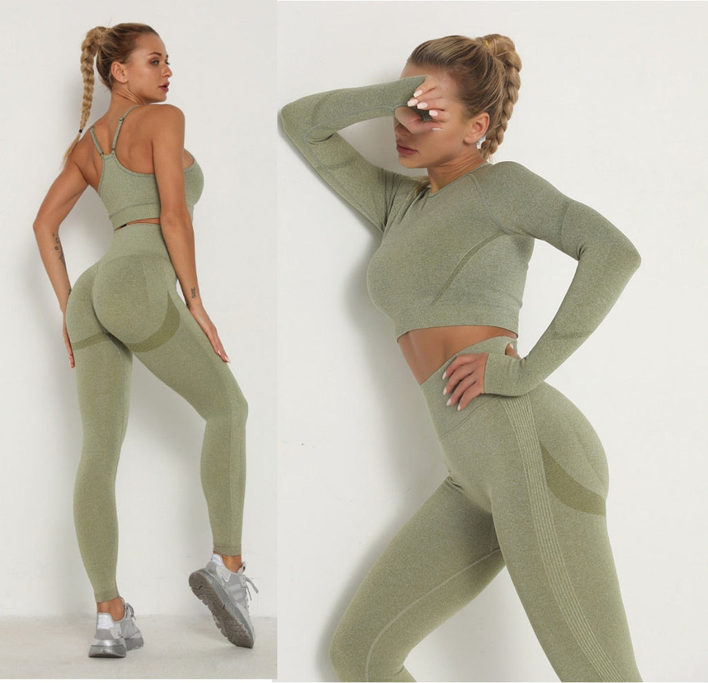 Elevate your fitness wardrobe with our Seamless Women Sport Set For Gym Long Sleeve Top High Waist Belly Control Leggings Clothes Seamless Sport Suit Sexy Booty Girls and experience the perfect blend of functionality and style. Don't miss out on the opportunity to look and feel great while achieving your fitness goals!