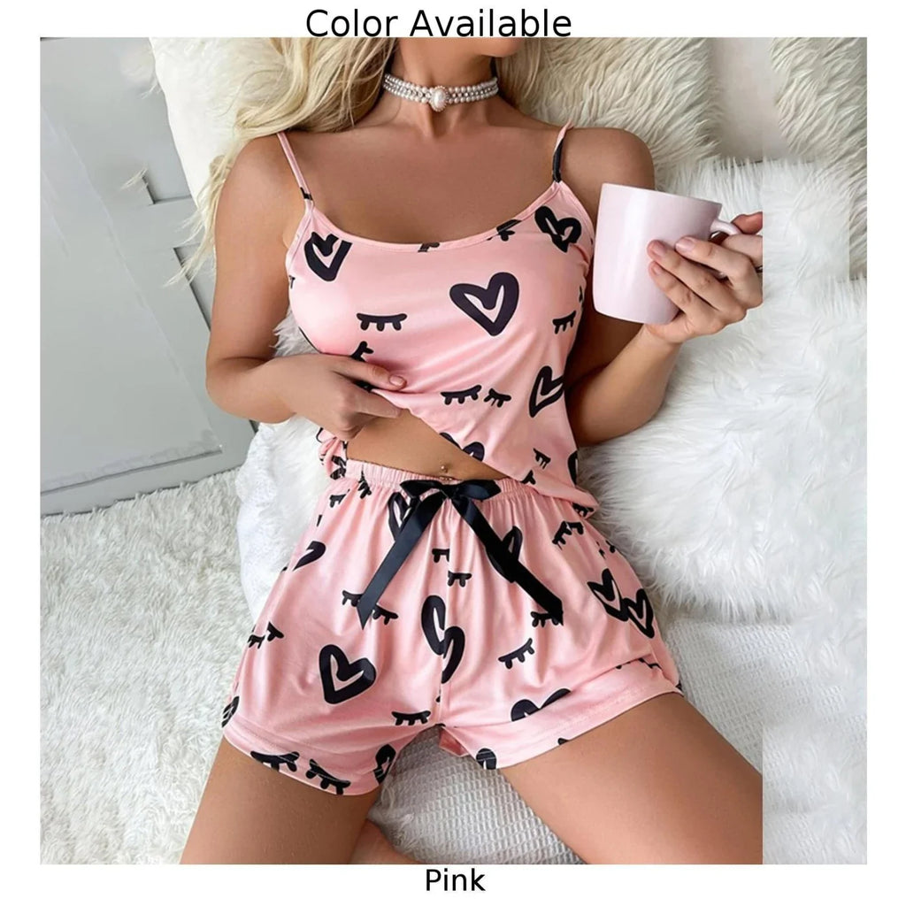 Elevate your sleepwear game with our Sexy Summer Love Print Lingerie 2 Pieces Pajama Set! This glossy set includes a slip camisole and shorts, perfect for a flirty and comfortable night's sleep. Embrace your adventurous side with these pyjamas and make bedtime your new favorite activity!