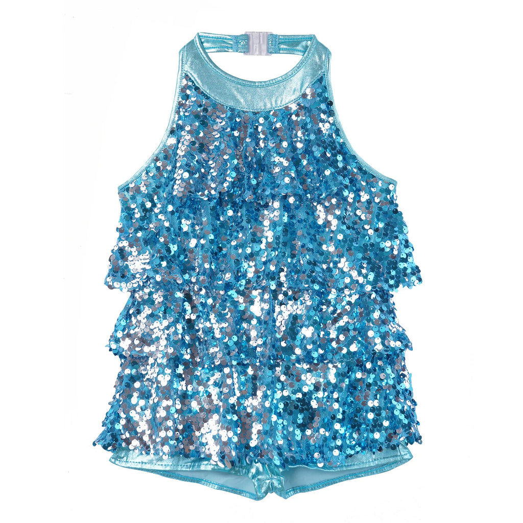 Elevate your child's performance with the Shiny Sequins Kids Girls Halter Ballet Dance Stage Performance Dress Shorty Unitard Dress Modern Jazz Latin Dancing Costumes. Designed for aspiring dancers, this eye-catching halter dress is perfect for various dance styles, including ballet, modern jazz, and Latin dance. The shimmering sequins catch the light beautifully, ensuring your little girl will shine as she takes the stage.