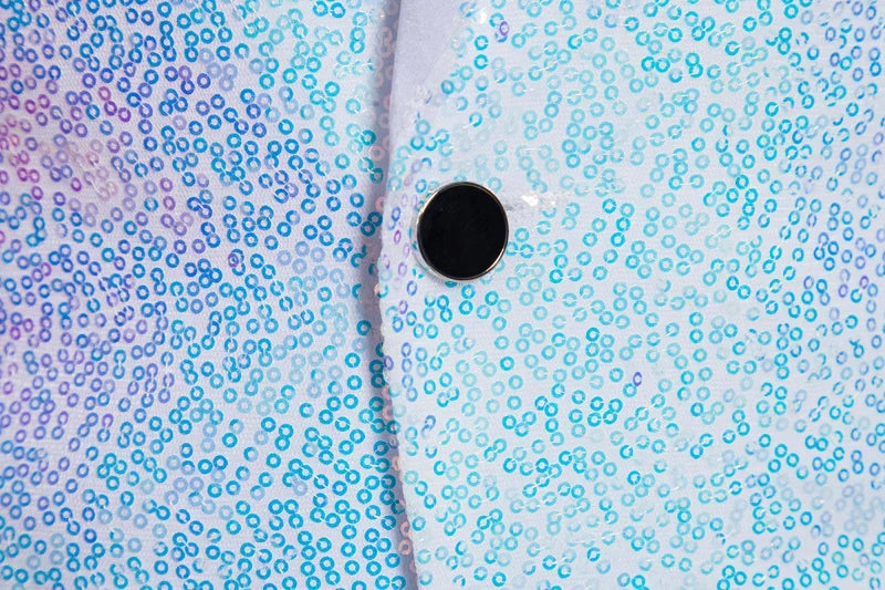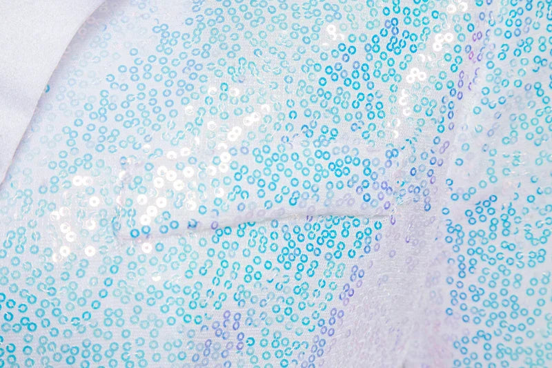 Elevate your style and make a statement with the Shiny White Sequin Glitter Blazer for Men One Button Peak Collar Tuxedo Jacket Mens Wedding Groom Party Prom Stage. This eye-catching blazer is designed to turn heads whether you're celebrating at a wedding, attending a glamorous party, or stepping out for prom night. The stunning sequin embellishments add a touch of sparkle, ensuring you stand out in any crowd.