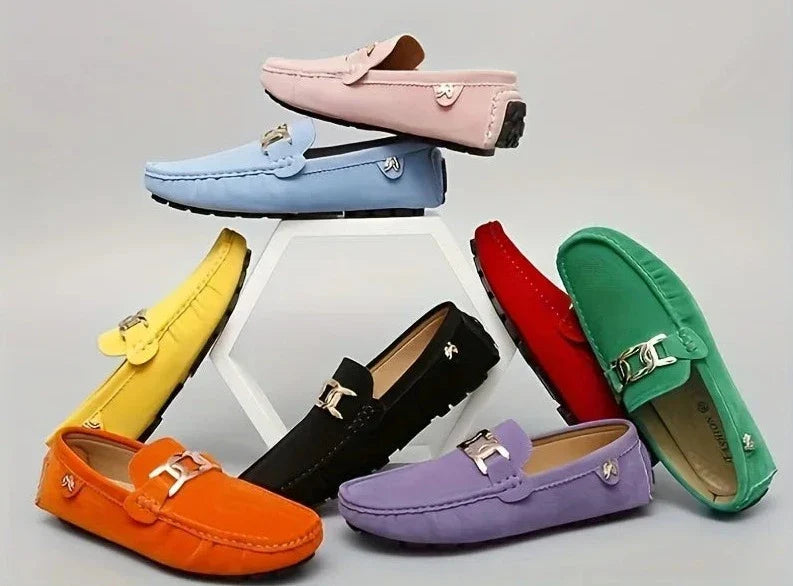 Introduce your feet to comfort with these super soft slip-on shoes. Made with split leather, these loafers are perfect for lounging or walking. Easy to slip on, these versatile shoes are great for both men and women. Look effortlessly cool this summer with these casual yet stylish moccasins.