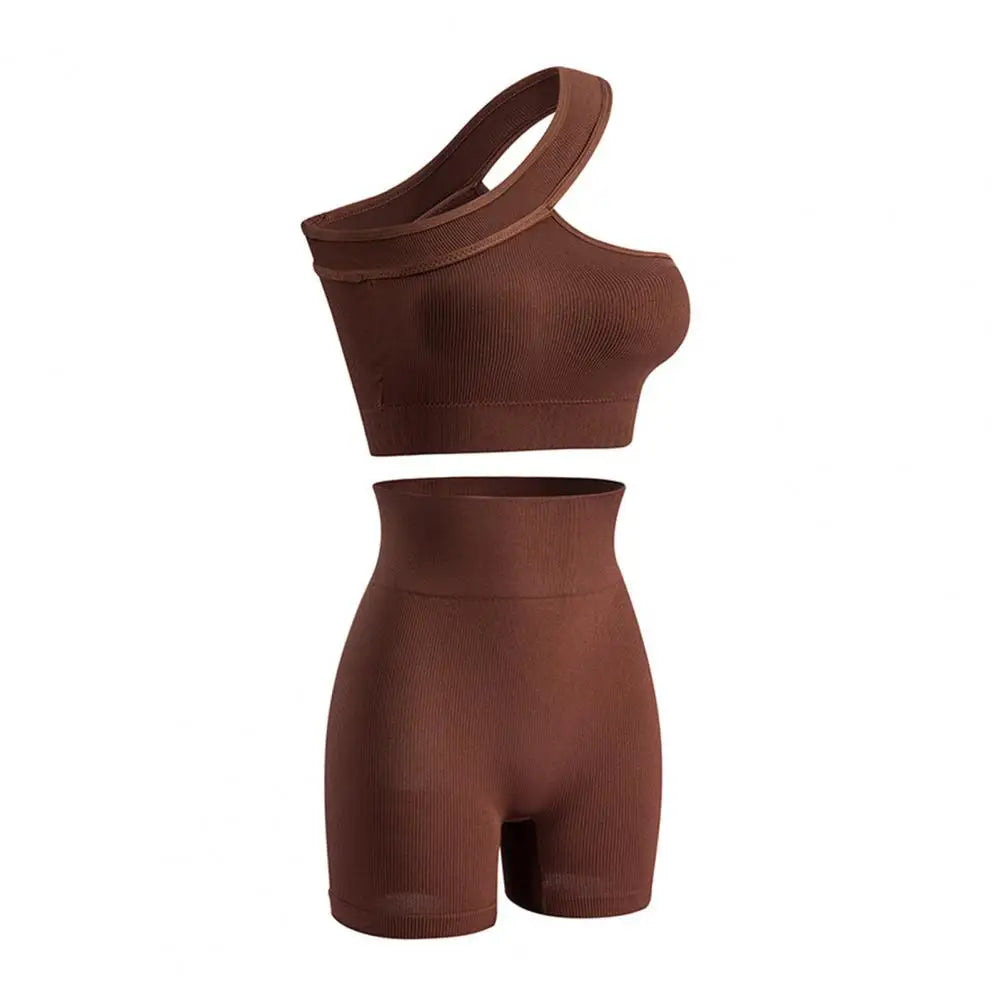 This Sportswear Set Yoga Outfit Women's Off Shoulder Yoga Set with High Waist Shorts Butt-lifted Design 2 Piece for Fitness is more than just workout gear; it's a statement of confidence and style. Whether you're mastering yoga poses or hitting the gym, this outfit will keep you comfortable and looking great. Dominate your fitness journey with this unique and appealing sportswear set that combines fashion and functionality!