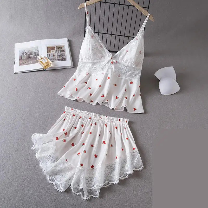 Experience ultimate comfort and style with our Summer New Strap Pajamas Set Women Lace Sleepwear Print Nightwear Intimate Lingerie Silky Satin Pyjamas Sleep Suit Homewear. This exquisite pajamas set is designed for modern women who prioritize both elegance and relaxation during their downtime. Made from a luxurious blend of silky satin and breathable materials, this stunning sleepwear offers a soft touch against your skin, making it the perfect choice for warm summer nights.