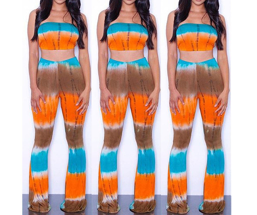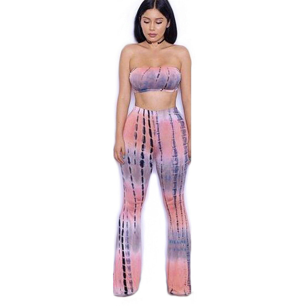 Don’t miss out on this must-have addition to your wardrobe. Elevate your style with the Tie Dye 2 Piece Set Women Jumpsuit Long Romper Strapless Crop Top And Flare Pants Casual Bodysuit Fashion Playsuit Overalls today!