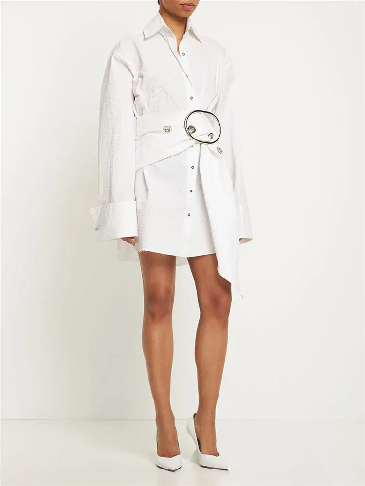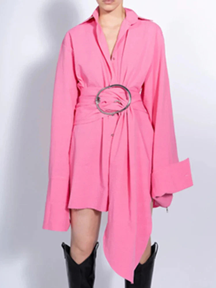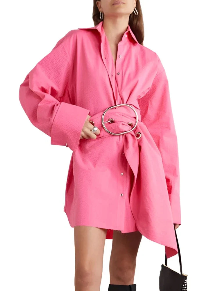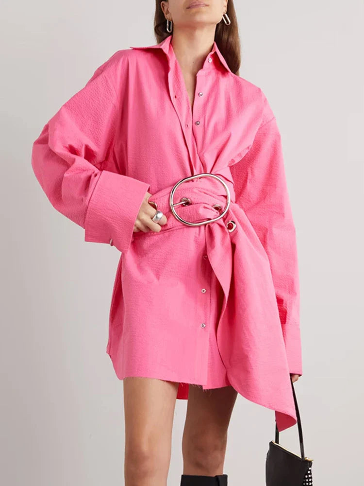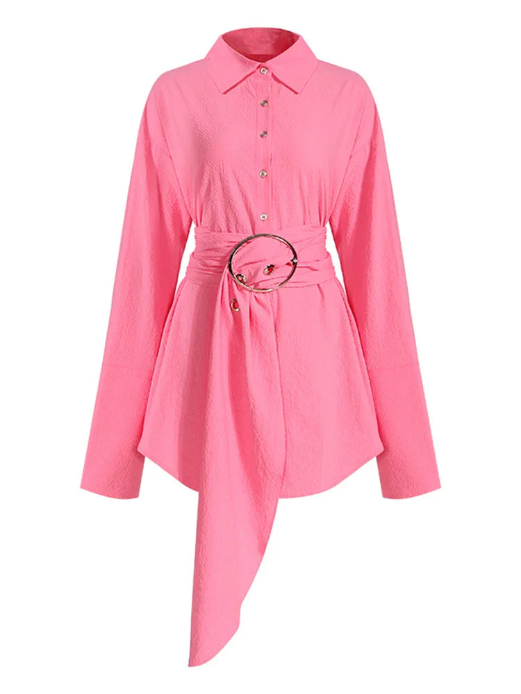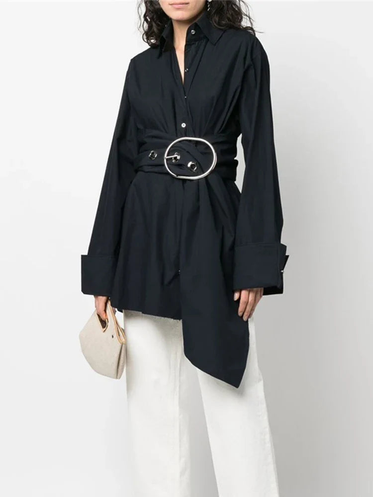Unleash your daring style with our Solid Spliced Belt Blouses! This vintage chic shirt features a bold lapel and long sleeves, perfect for making a statement. The unique single-breasted design adds a touch of adventure to your look. Upgrade your wardrobe today and stand out from the crowd!