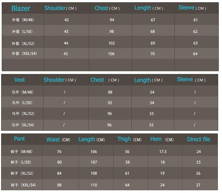 Please contact us for detailed sizing information to ensure you find the perfect fit. Embrace elegance and confidence with our Three-piece formal blazer suit / Male suit of cultivate one's morality Business suits today!