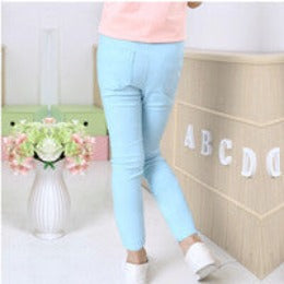 Discover the perfect blend of style and comfort with our Summer Elestic Waist Children Pants Girls Jeans Pants Candy Color Solid Causal Jeans For Baby Girl Leggings. These trendy leggings are designed specifically for your little fashionista, ensuring she stands out while staying comfortable during the summer months or any season. Made with a soft and breathable fabric, these pants are perfect for playful adventures, family outings, or casual wear.
