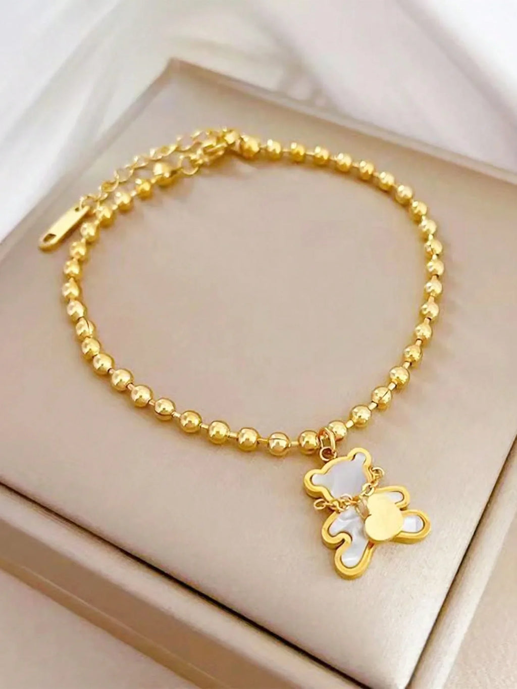 The enchanting design of this jewelry set captures a sense of playful sophistication. The combination of the white shell finish and the cute bear figure creates a striking visual appeal that is sure to turn heads. Whether you're dressing up for a special occasion or looking for a stylish accessory for everyday wear, this jewelry set is a versatile choice.