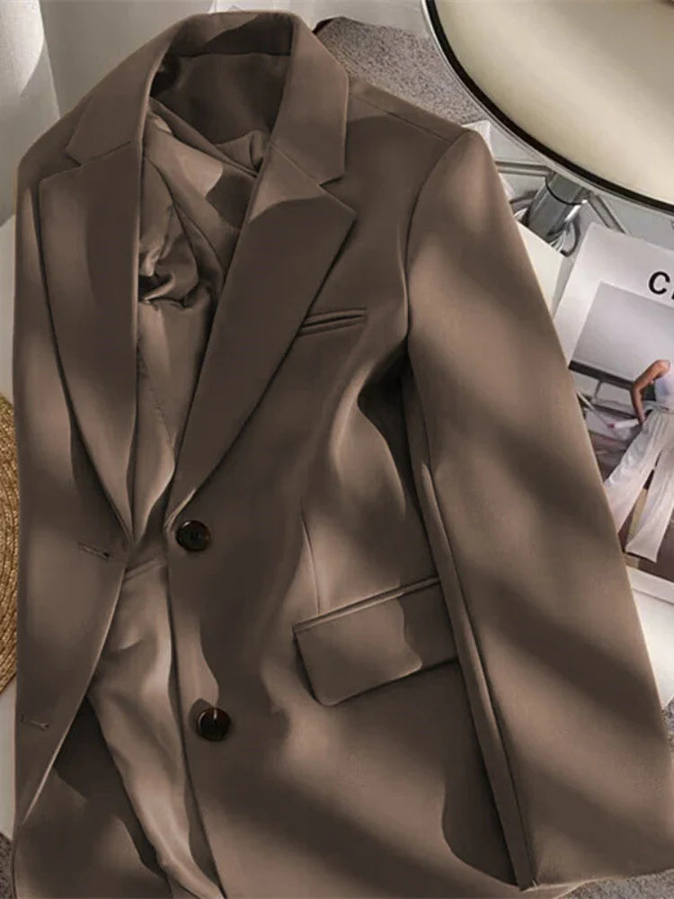 This blazer features a tailored collar and a single-breasted closure, adding a touch of sophistication to your look. With practical pockets, it combines functionality with fashion, ensuring you have the essentials at hand. The solid color and long sleeves make it a classic piece that never goes out of style.