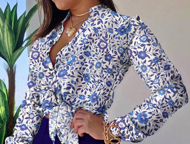 The Women Long Sleeve Floral Printed Tie Knot Top Blouse Casual Spring Shirts Female features a classic turn-down collar and regular sleeve style that adds sophistication to your outfit. The sashes create an adjustable fit, allowing you to style it to your liking while ensuring a flattering silhouette. Pair it with jeans, skirts, or shorts for a complete look that transitions seamlessly from day to night.