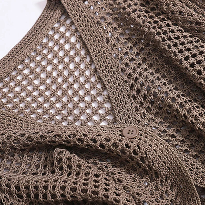 Stay cool and stylish with our Women's Versatile Hollow Out Cardigan! Perfect for summer, its mesh fabric and loose fit provide comfort and a breezy feel. With a trendy V-neck and button detailing, it's the perfect lazy day top. Protection from the sun? Check. Versatility? Check. Fashion? Double check.