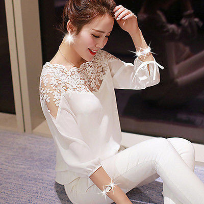 Sleeve Length: FullWomens Ladies Long Sleeve Loose Chiffon Blouse Casual Shirt Tops Fashion Blouse