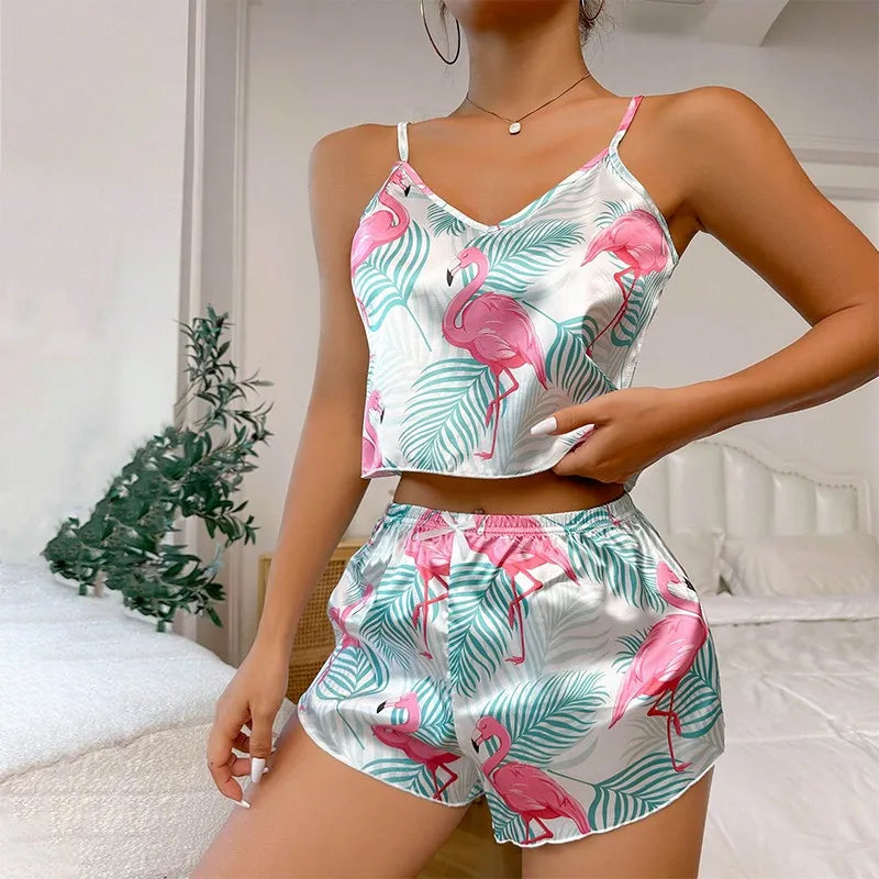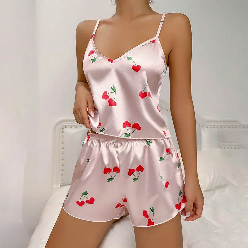 Unwind and indulge in luxurious sleep with our Women's Sexy Pajama Set. Made with silk satin, this 2-piece set includes a V-neck cami top and shorts for ultimate comfort. Slip into these pajamas for a night of rest and recharge. Sleep in luxury, wake up refreshed.