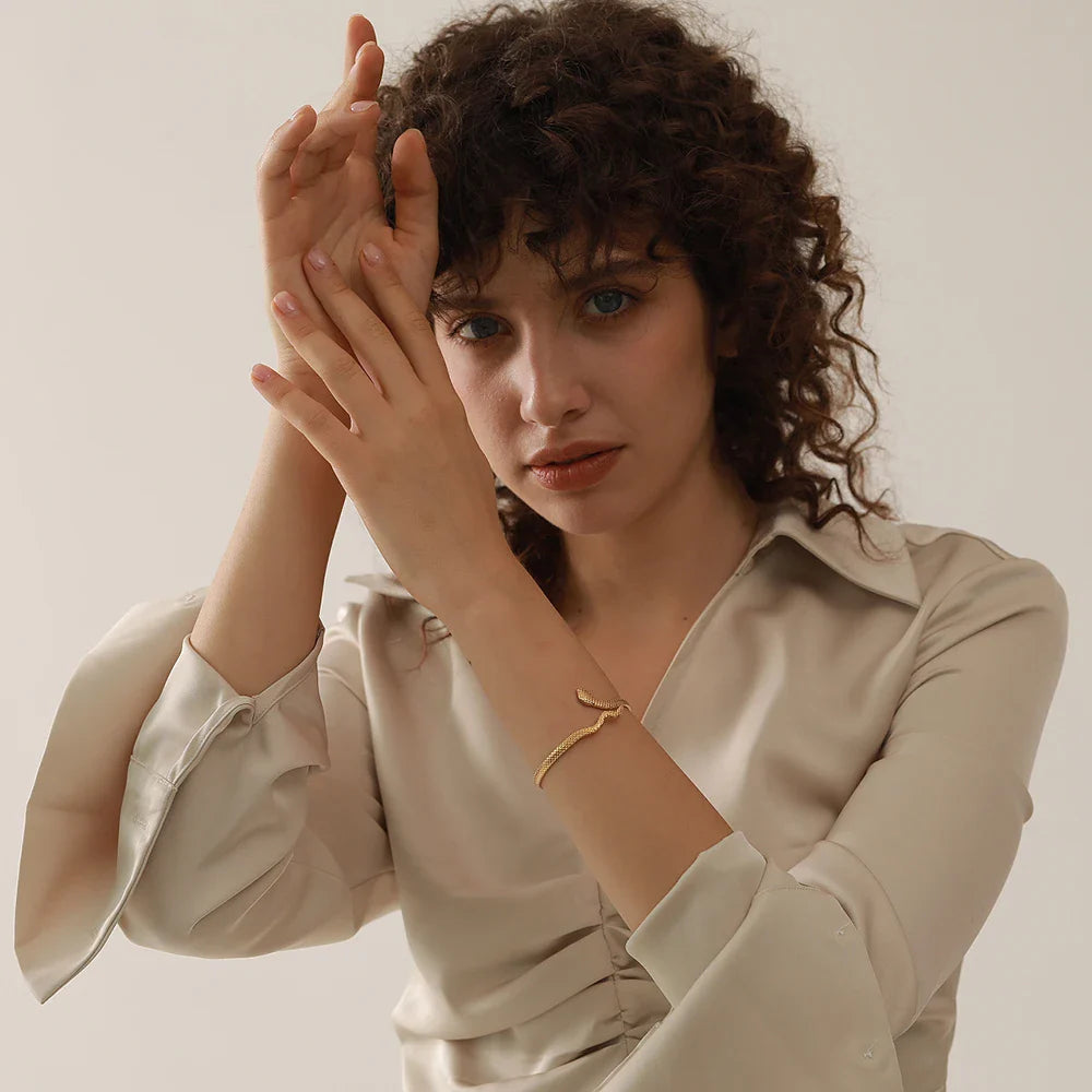 Unleash your wild side with this snake fashion open charm bracelet bangle for women! Made of high-quality materials, this golden wrist accessory combines fashion and function with its waterproof design. Make a statement with this unique and playful animal-inspired jewelry piece!