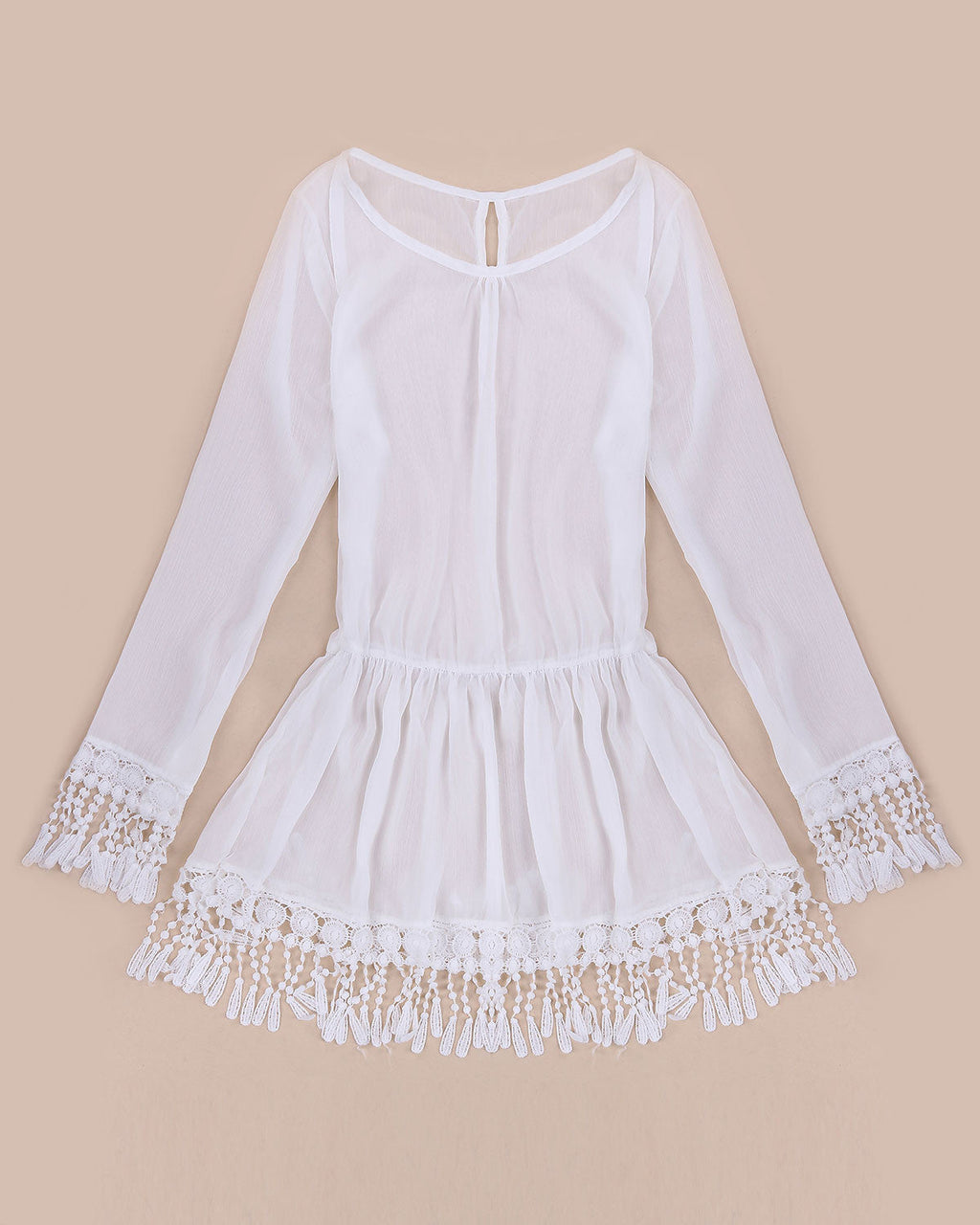 Embrace the summer vibes and make a statement with the Summer Women Boho Tassel Lace Dress Sexy Crochet Tunic Beach Party Dresses Black White Chiffion. Elevate your style and experience unmatched comfort today!